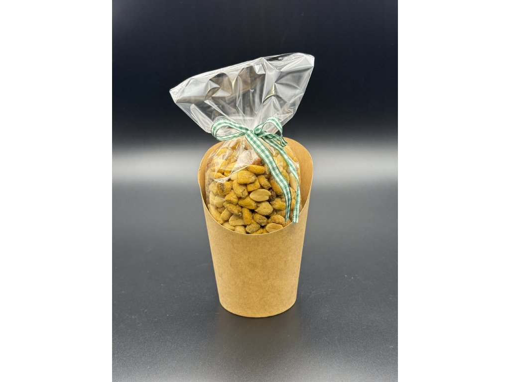 Dopřejte si výraznou chuťovou kombinaci, která spojuje slané arašídy, kořeněné mandle s hořčičným nádechem a lehce nasládlou kukuřici s hořčicí a medem. Výsledkem je perfektně vyvážené křupání – slané, pikantní i jemně sladké v jednom soustu. Praktické dárkové balení v celofánovém sáčku vloženém do papírového kelímku potěší doma, v práci i na cestách.