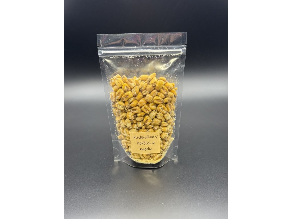 Neodolatelná kombinace sladkého medu a pikantní hořčice na dokonale křupavé pražené kukuřici. Každé sousto propojuje jemnou karamelovou sladkost s lehkou kyselkavostí a kořeněným závěrem, který zvýrazní přirozenou chuť kukuřice. Ideální na setkání s přáteli, k pivu i suchému bílému vínu, do snack mixů, na cesty i jako netradiční posyp do salátů. Obsahuje med (nevhodné pro vegany a pro děti do 12 měsíců) a hořčici.