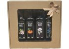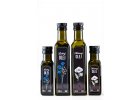 Elegantní dárkový set pro milovníky chuťovek: lněný zlatý olej 250 ml a čtyři druhy křupavých ořechů – wasabi...